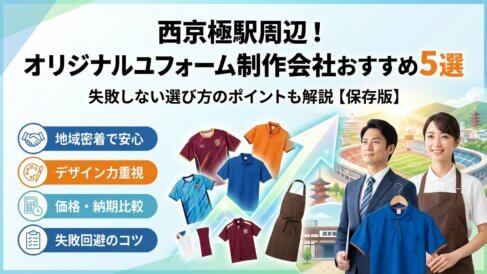 西京極駅のこだわりを反映するオリジナルユニフォーム制作会社おすすめ5選!選び方のポイントは? スタッフ写真を撮るたびに「なんとなく野暮ったい」「求人の応募が伸びない」と感じているなら、ユニフォーム選びで静かに損をしています。西京極駅周辺にはDream Company、プラスワン京都三条御幸町店、アートライン、夢工房京都本店、有限会社... 2026.03.27